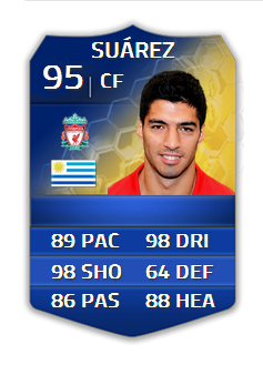 Fifa 14 tots suarez 95 cf in game stats and player review for ultimate team.
